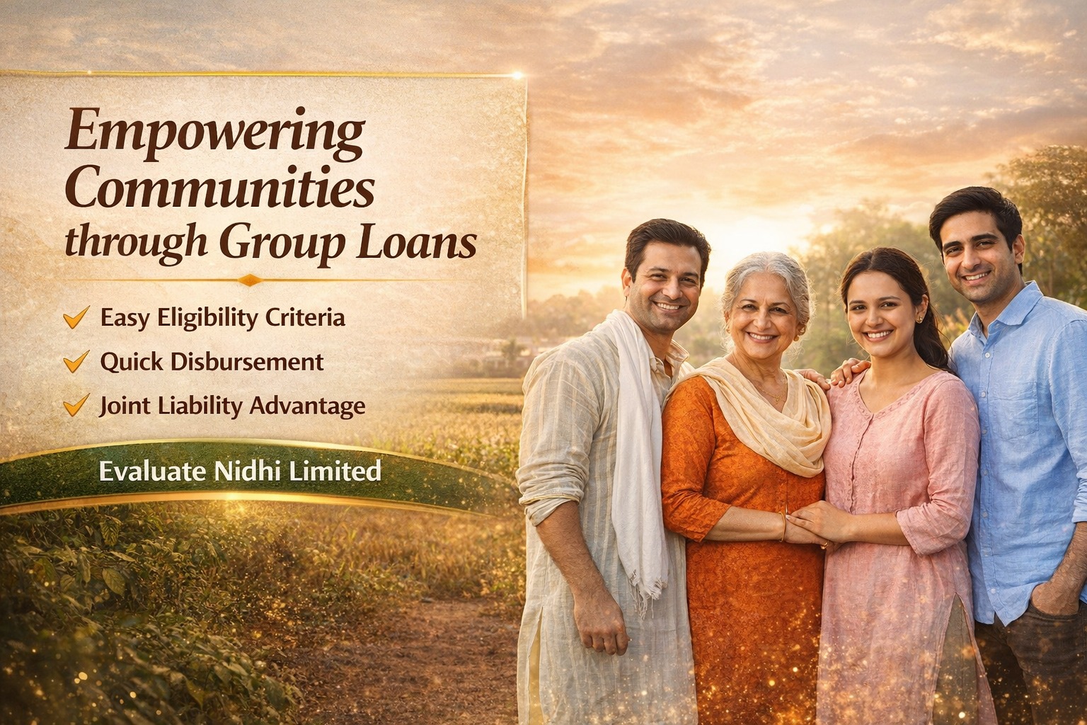 EVALUATE nidhi limited generally does not provide formal “group loans” like microfinance institutions. Under the Nidhi Rules, it can grant loans only to its registered members, usually as individual secured loans backed by collateral such as gold, property, or deposits. However, if several members jointly apply the loan is still treated as a member-based loan, not a separate group-lending scheme.